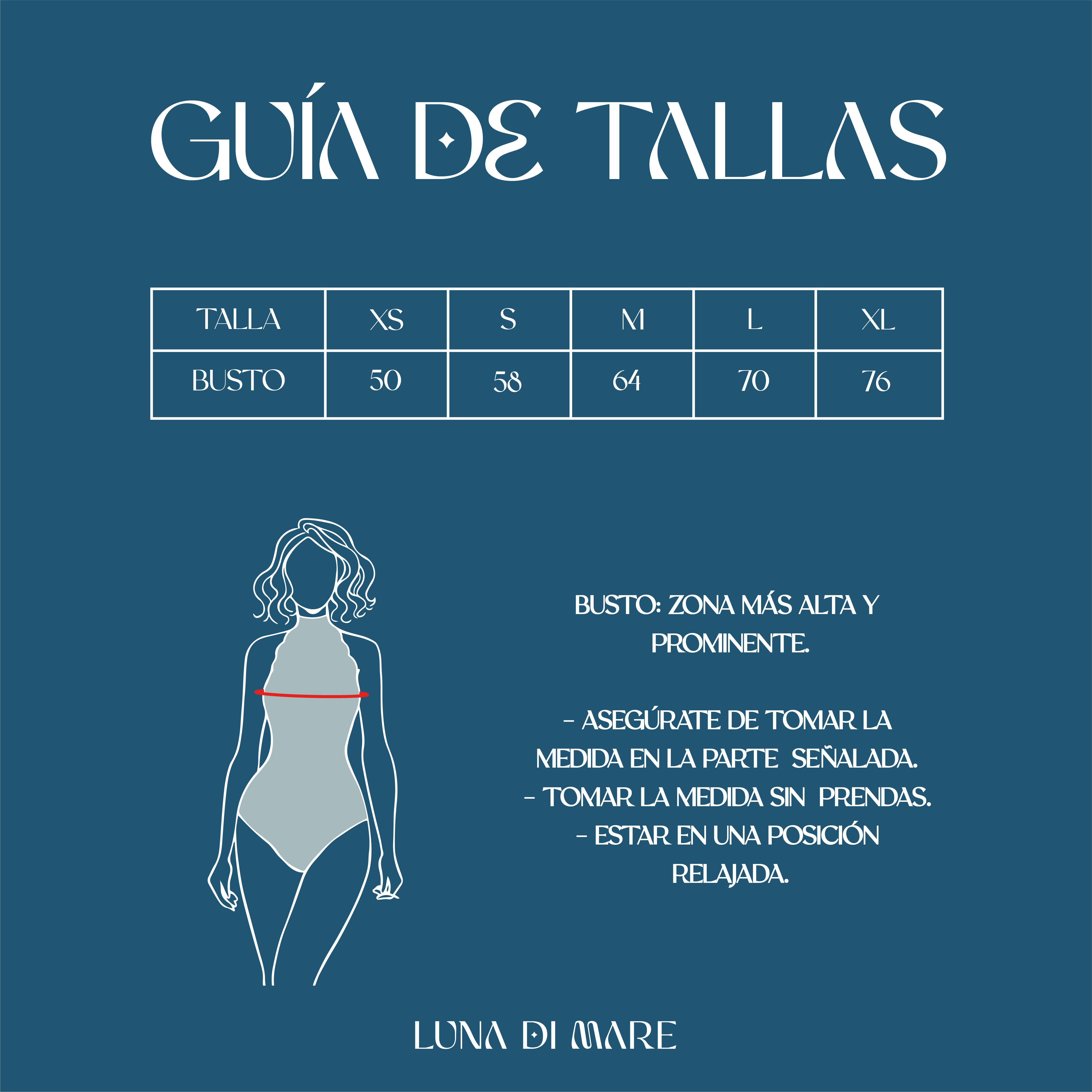 Cada producto cuenta con su propia tabla de tallas según la referencia. Te recomendamos tomar tus medidas siguiendo las indicaciones de la guía y, con base en ellas, seleccionar la talla ideal para cada diseño.